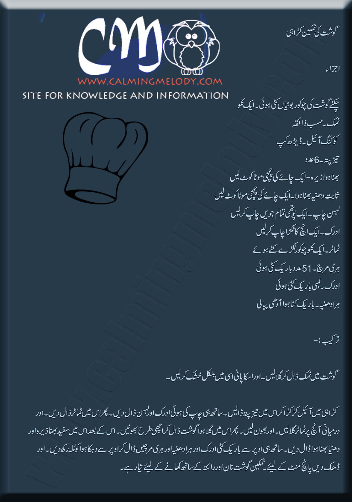 عید کی آمد آمد ہے۔ گوشت کے کھانے ہمیں اپنی طرف متوجہ کر رہے ہیں۔ ایسے میں نمکین گوشت کڑاہی عمدہ مشورہ ہے پکانے کے لیئے۔ نمکیں گوشت پکانے کے لیئے آپ گائے، بکری یا دنبے کا گوشت استعمال کر سکتے ہیں۔