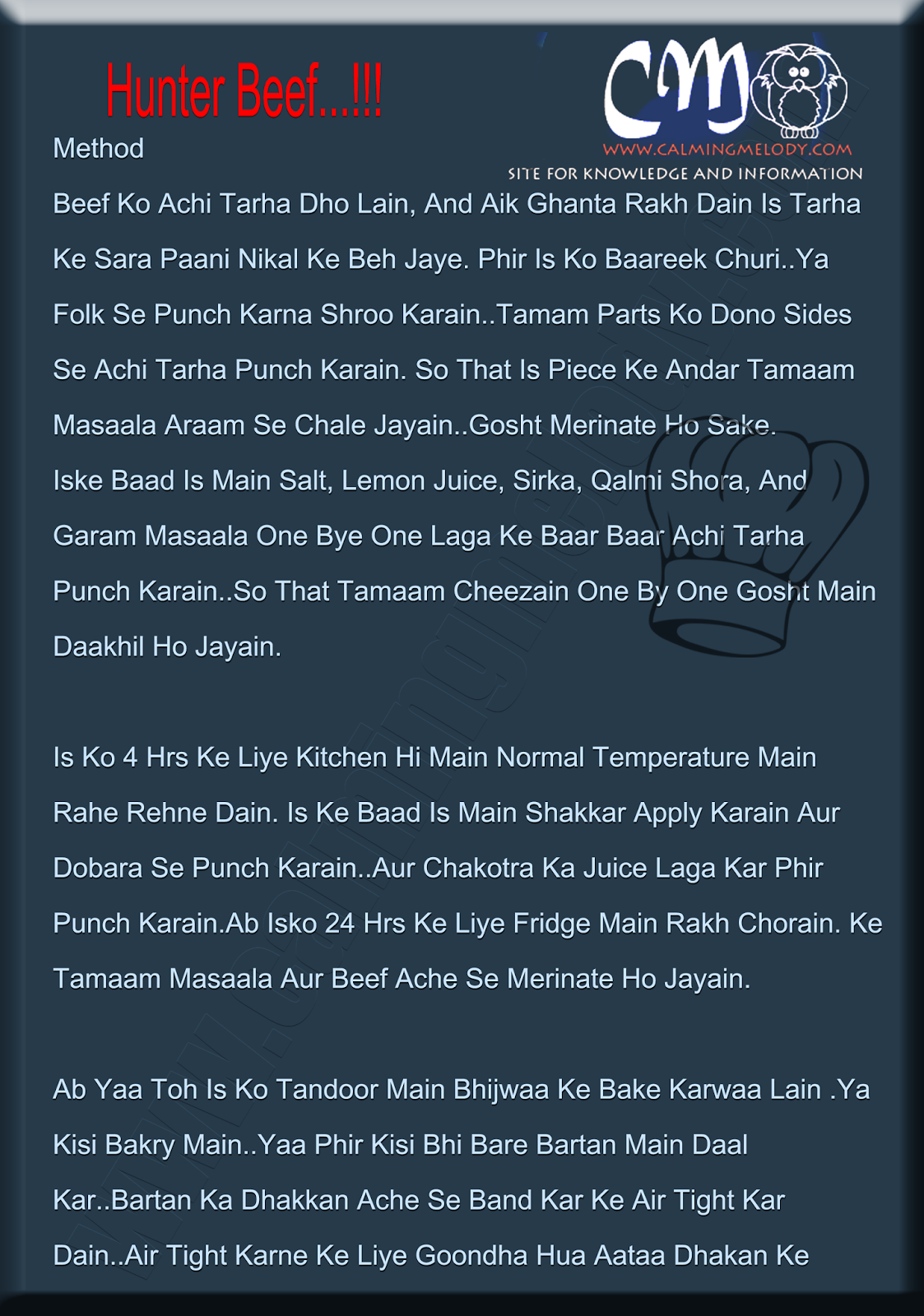 Hunter beef is the only dish that is very much valualble for all of us. as it is difficult in cooking and time spending dish. but when ever we get the chance to enjoy that dish. v always preffer to purchase it from popular bakeries. but its now available for all of you.